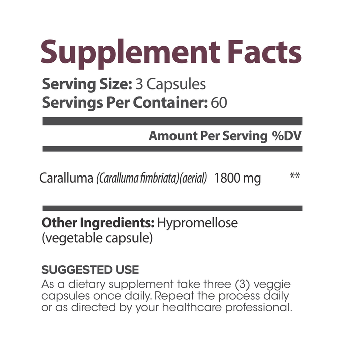 - High Potency: Each serving includes 1800mg of Caralluma extract.
