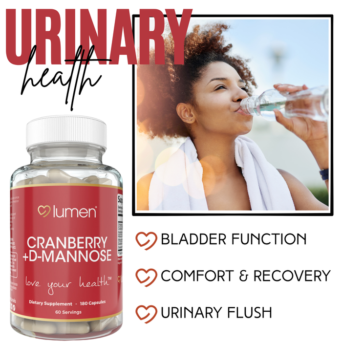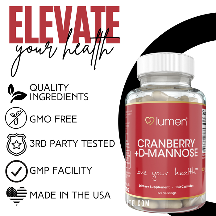 Lumen Naturals Cranberry + D-Mannose for Women combines the natural benefits of cranberry, D-Mannose, hibiscus, and dandelion extract in a potent 2000mg blend per serving. This specially formulated supplement includes 180 capsules, enough for a 60-day supply, tailored to support the wellness routine of women. Whether you are looking to integrate essential natural ingredients into your daily diet or seeking a reliable supplement, this blend offers a convenient and effective solution.