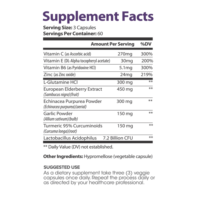 - Includes elderberry, zinc, and essential vitamins (C, E, B6)