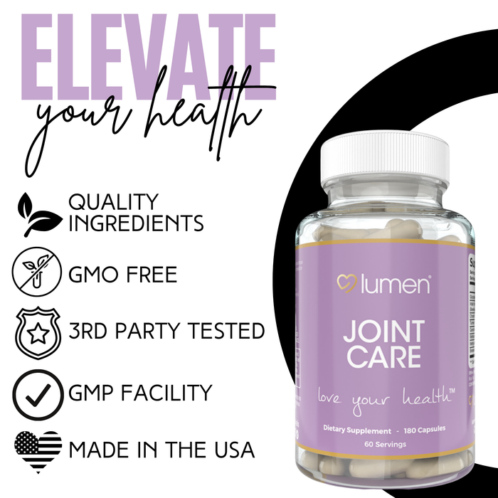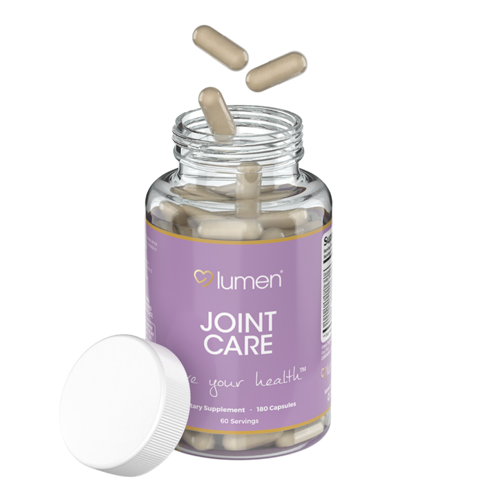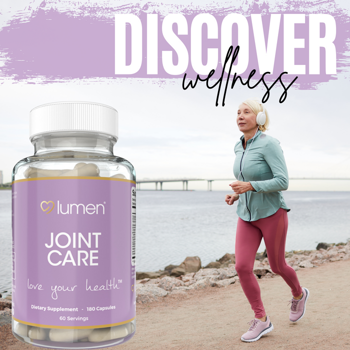 Enhance your daily wellness routine with Lumen Naturals Mobility Care Supplement for Women. This supplement is crafted with glucosamine and turmeric, ingredients chosen for their significance in wellness practices, particularly in supporting joint health. Packaged in a bottle with 180 capsules, providing 60 servings, this supplement is designed to be an easy addition to your daily health management.