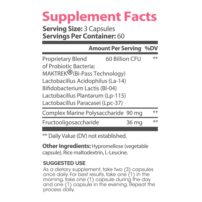 - Maktrek® Technology: Designed to help the probiotics navigate through stomach acid.
