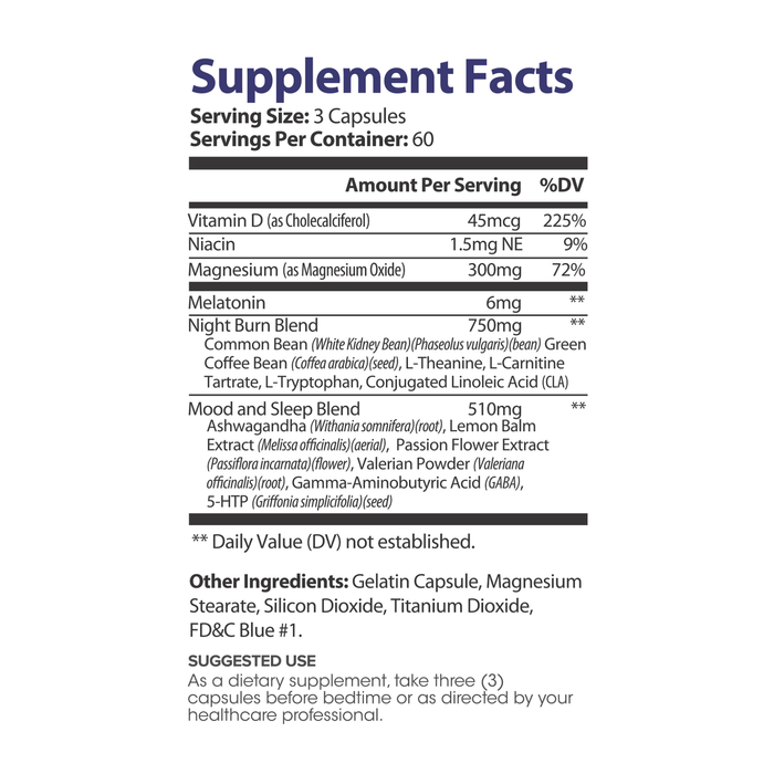 Lumen Naturals SkinnyDream Supplement for Women - Night Blend, Vitamin C, Niacin, Magnesium, Melatonin - 180 Capsules - 60 Servings